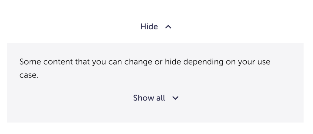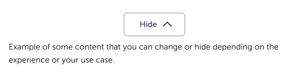 For the container of the hidden content: it’s unstyled by default. You can choose how you want the information to be styled.