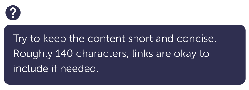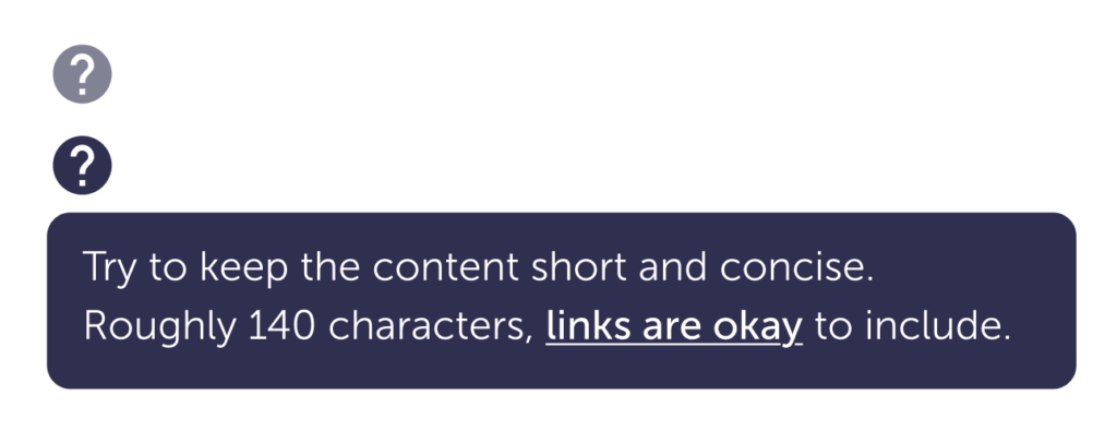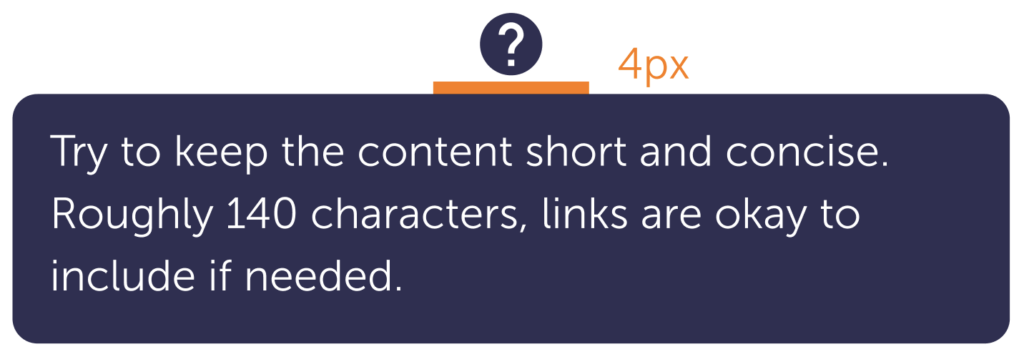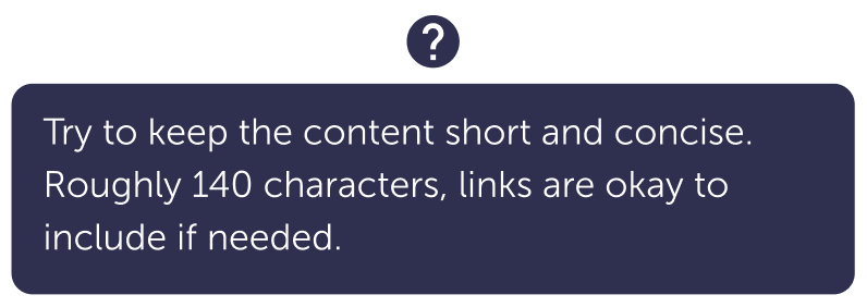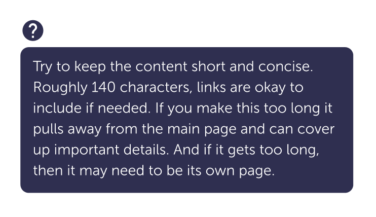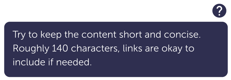- Try to keep the message in the popover under 140 characters.