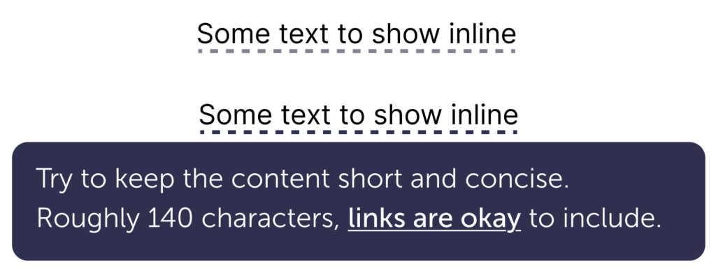 Tooltips are contextual, helpful, and nonessential information that is only visible through interaction.